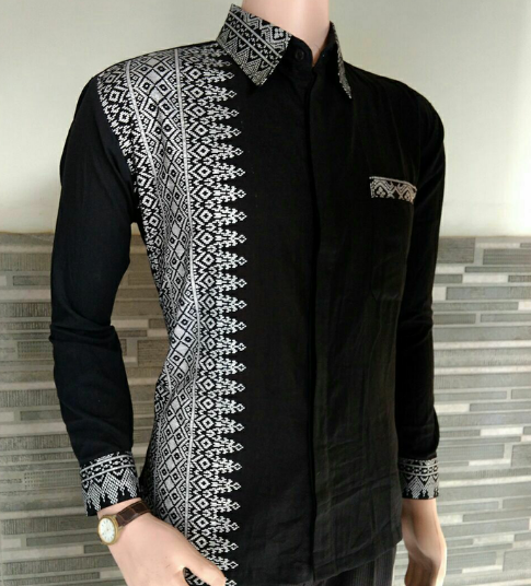 Model Baju Batik Pria Kombinasi Polos Modern 2019 - qibul fashion