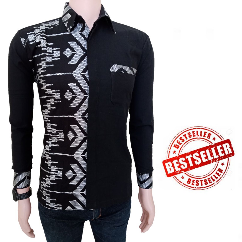 Hem Polos Kombinasi Baju Kemeja Batik Monokrom | elevenia
