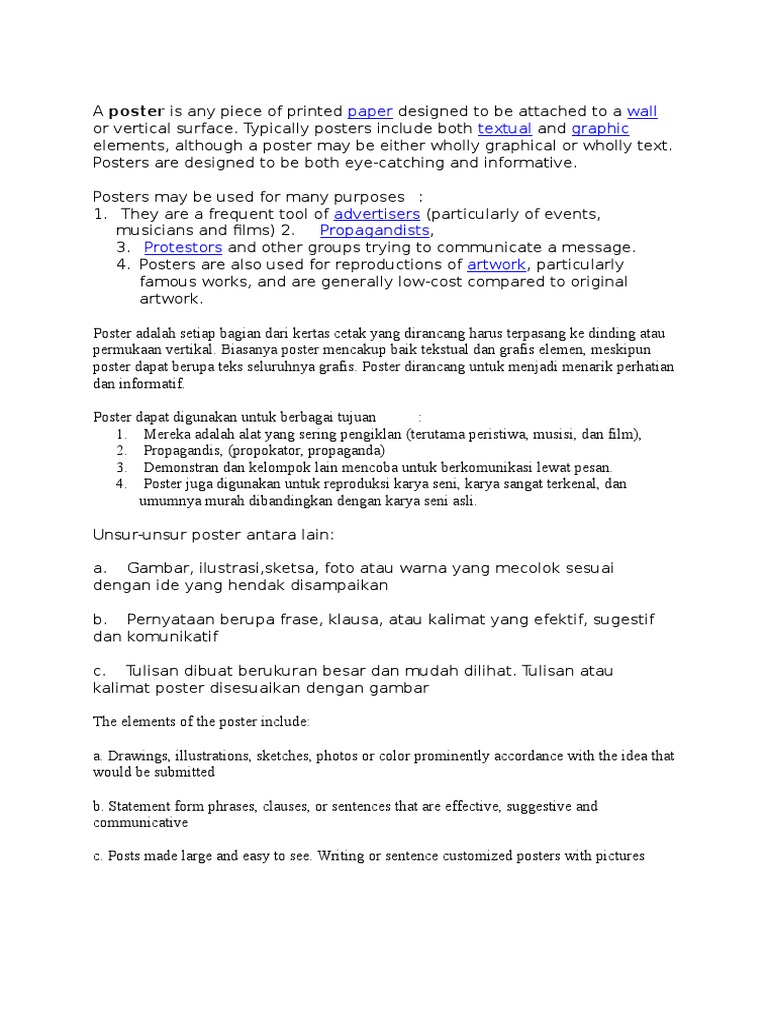 Poster Poster adalah salah satu bentuk media cetak grafis yang …