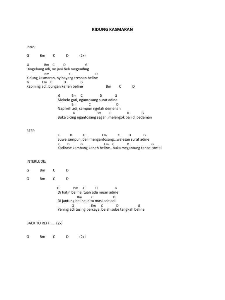 Kunci Gitar Lagu Bali Kidung Kasmaran - Kunci Gitar Terlengkap