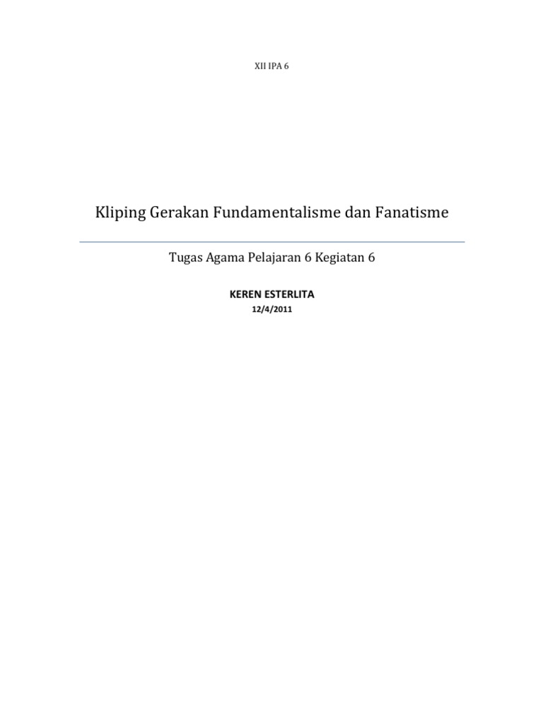 Kliping Tentang Gerakan Fundamentalisme Dan Fanatisme