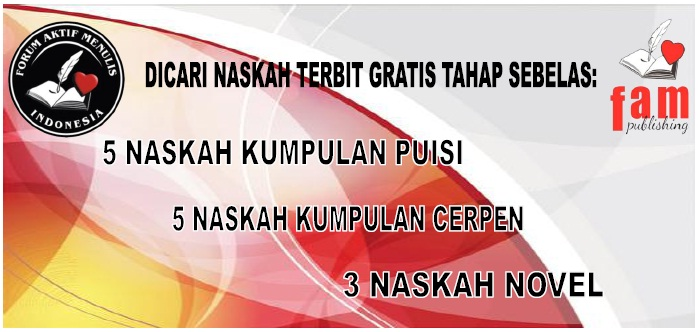 Dicari 5 Naskah Kumpulan Puisi, 5 Naskah Kumpulan Cerpen dan 3 Naskah Novel Terbit Gratis - FAM Indonesia