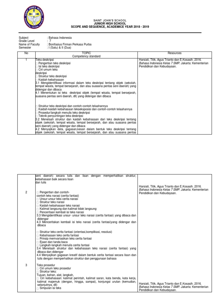 Scope & Sequence KELAS 7 SEM 1 Dan 2