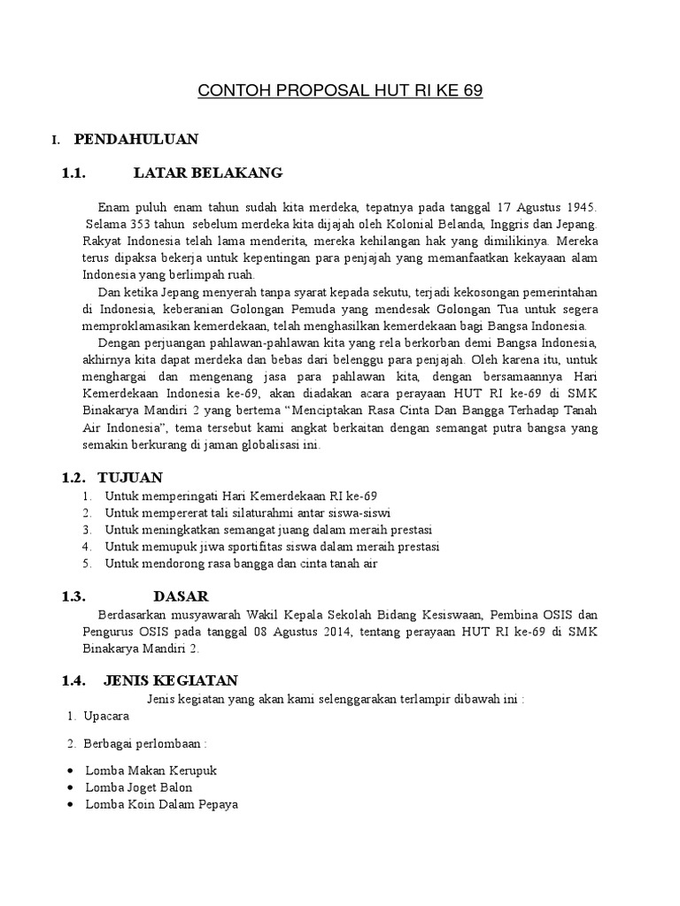 Contoh Proposal Hut Ri Di Sekolah - Nusagates
