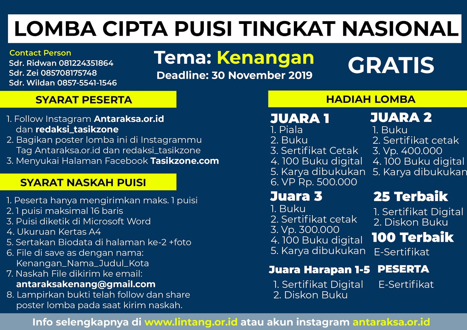LOMBA CIPTA PUISI 2019. - lomba menulis cerpen 2020 / 2021