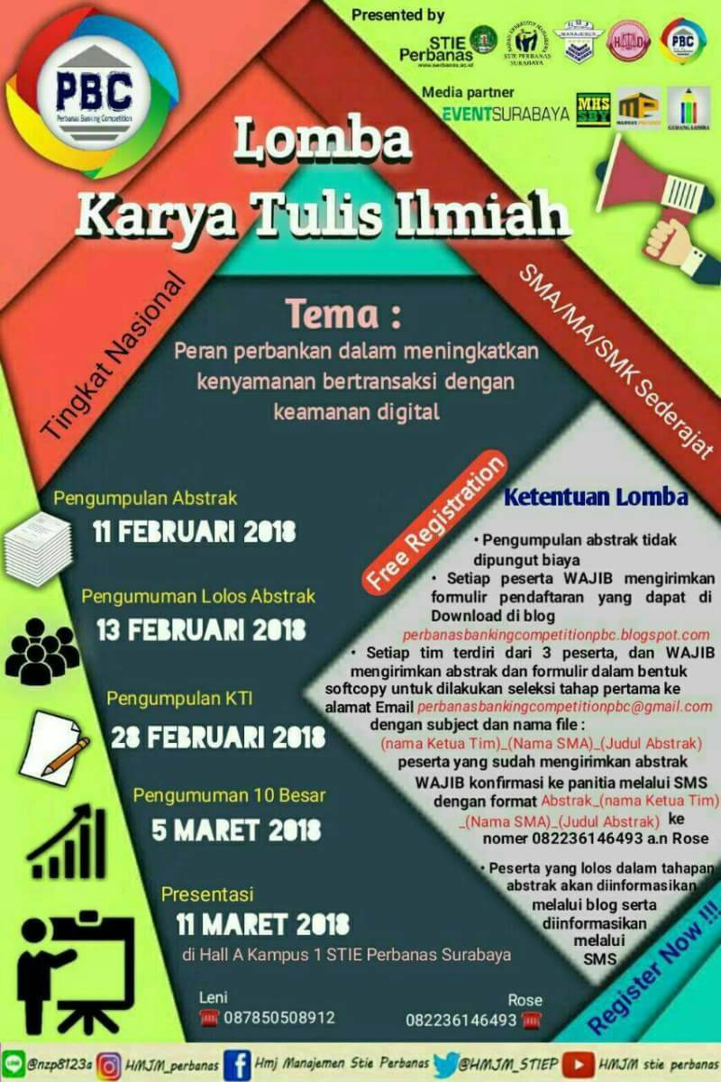 Lomba Karya Tulis Ilmiah Nasional Pelajar SMA - Sederajat 2018 di STIE Perbanas Surabaya