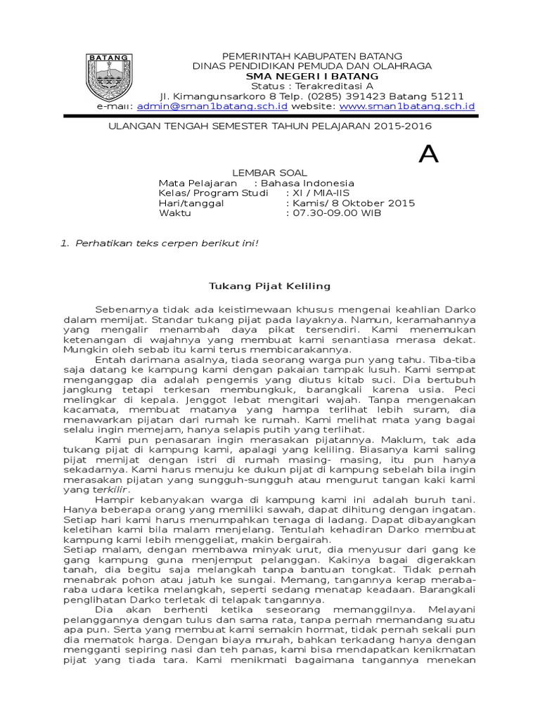 tolong dibantu yaadicerita “tukang pijat keliling” - Brainly.co.id