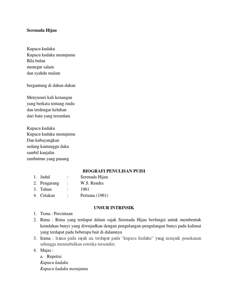 Adakah Lambang Lambang Pada Puisi Serenada Hijau Jika Ada Jelaskan …