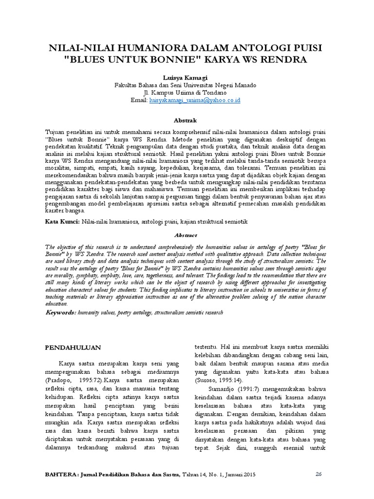 NILAI-NILAI HUMANIORA DALAM ANTOLOGI PUISI “BLUES UNTUK BONNIE” KARYA WS RENDRA