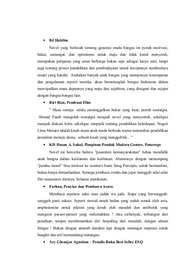 Apa amanat dari novel tentang negeri 5 menara ??? - Brainly.co.id