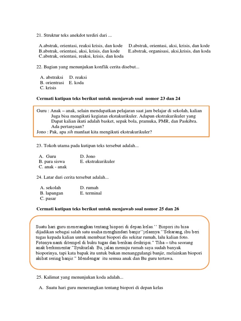viewPAKET 4 SOAL LATIHAN UN 201 6 Bacalah kalimat yang terdapat dalam teks anekdot berikut. Pria separuh baya itu datang ke bagian THT (Telinga Hidung Tenggorokan) sebuah rumah sakit. - [DOCX Document]