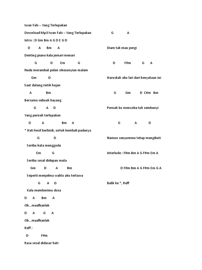 Chord iwan fals yang terlupakan Arti filosofi lirik Lagu