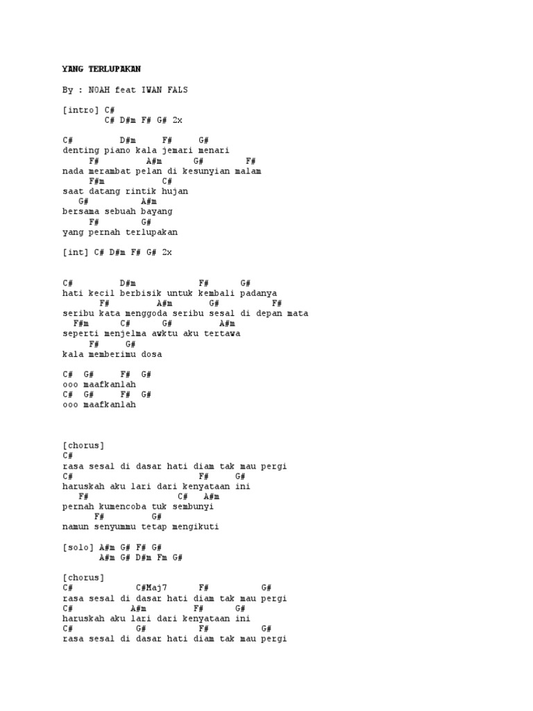 YANG_TERLUPAKAN" LYRICS by IWAN FALS: Denting piano kala jemari…