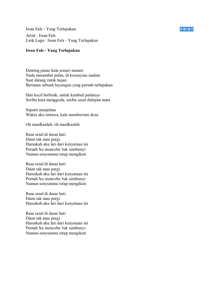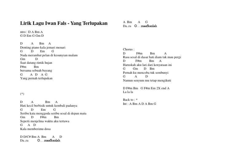 LIRIK LAGU - Yang Terlupakan Lagu Iwan Fals Denting piano …