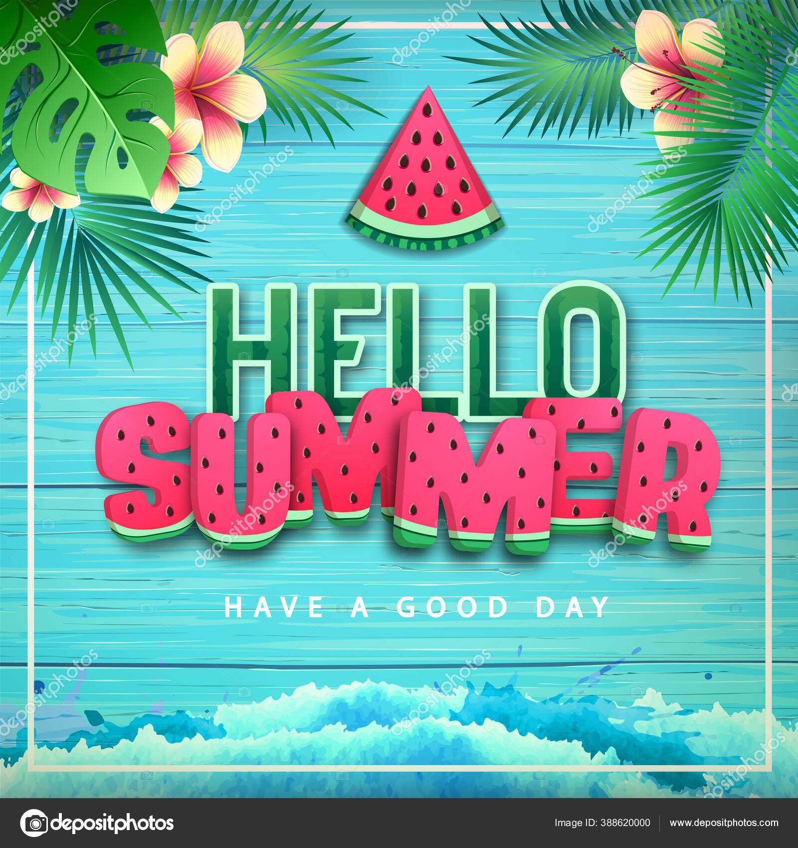Tipografi Halo Poster Musim Panas Dengan Jenis Semangka Latar …