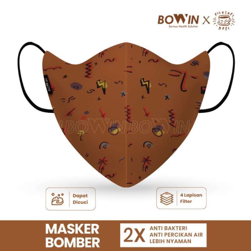 Masker Bomber BOWIN x Filosofi Kopi Masker Kain 4 Lapis Anti Bakteri dan Percikan Air KEMENKES RI | Lazada Indonesia