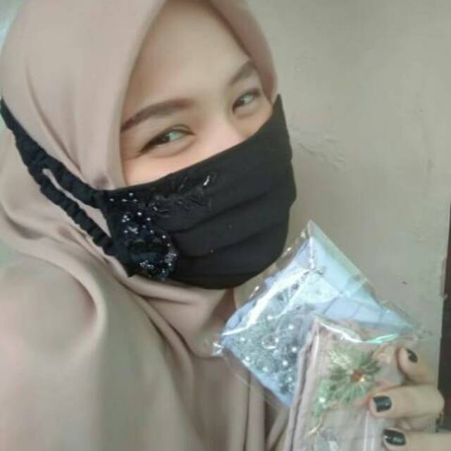 Masker kain fashion cantik centil handmade payet bruklat hijab …