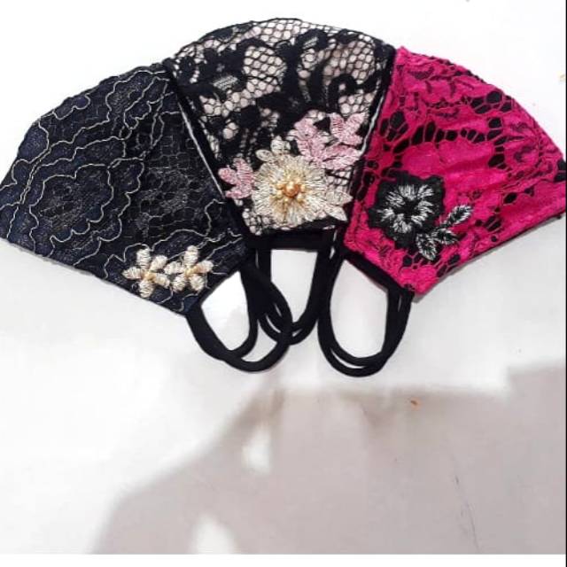 Masker kain fashion 3ply lace brukat unik cewek wanita model …