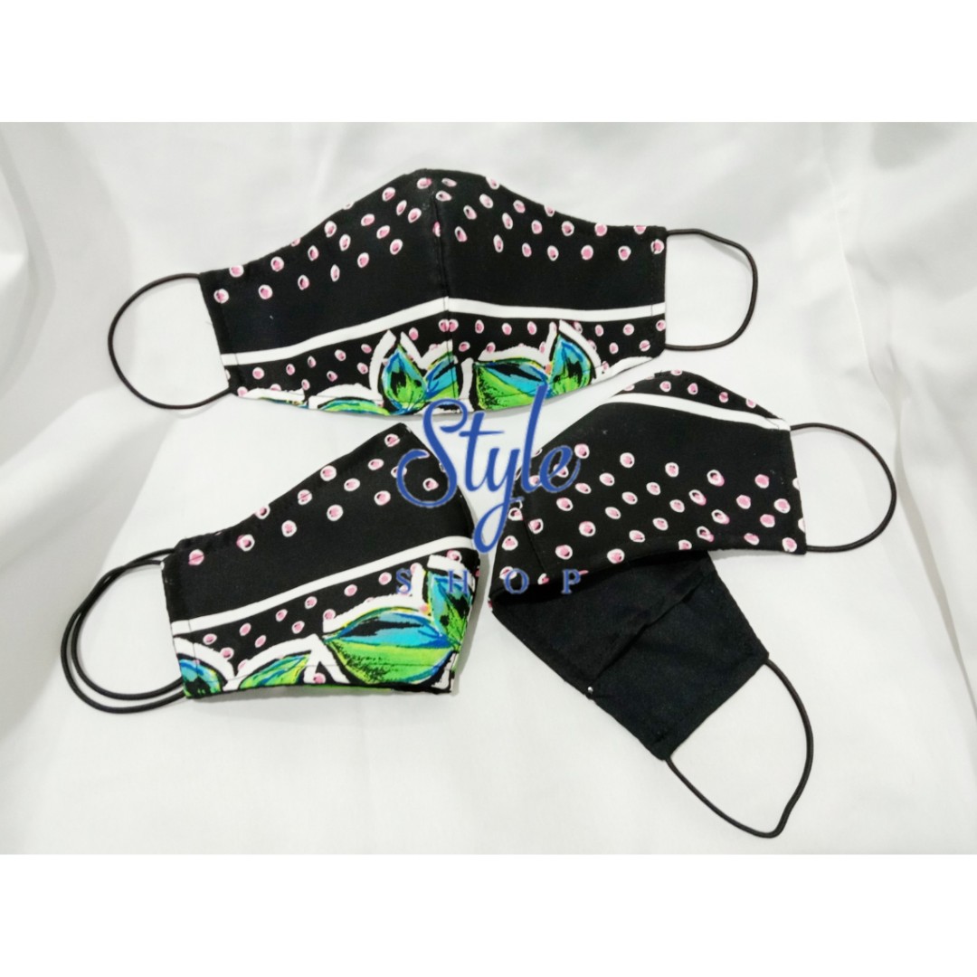 Masker kain Fashion Hitam corak - 3ply bisa Refill tissue, Olshop …