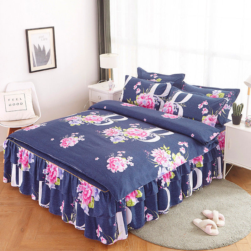 Buy 5m1.8m single double non-slip bed set bed linen Korean version of bed skirt bedcover four-piece set princess model 4 pieces set 1. on ezbuy SG