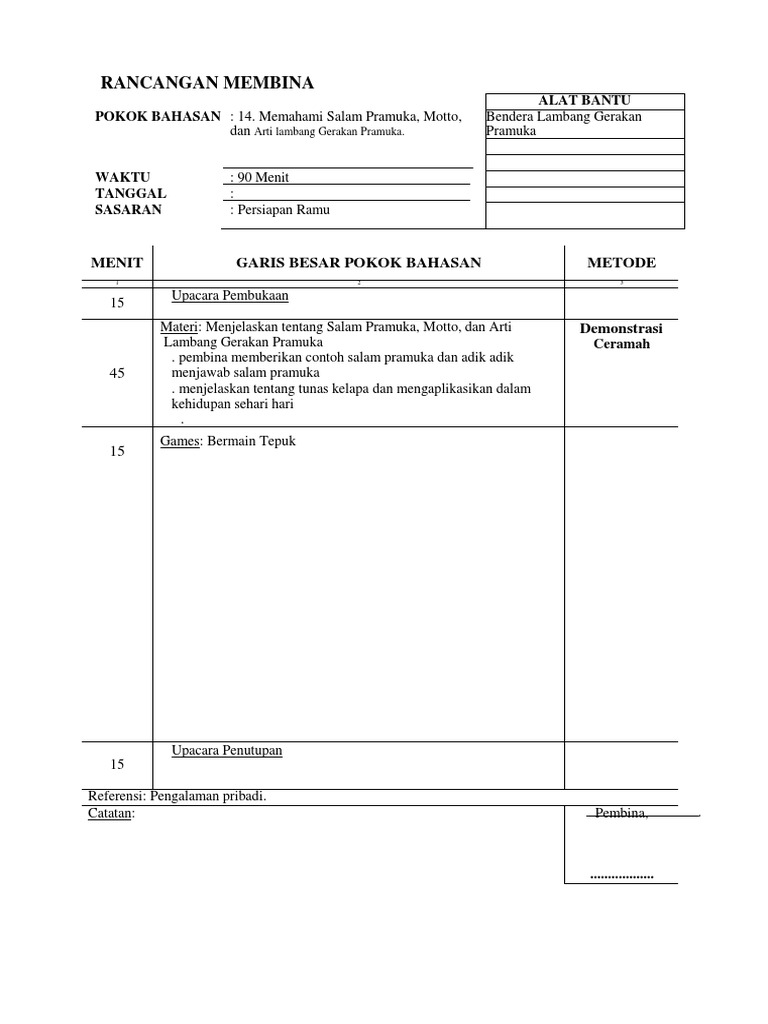 RENCANA PELAKSANAAN KEGIATAN (RPK) PRAMUKA
