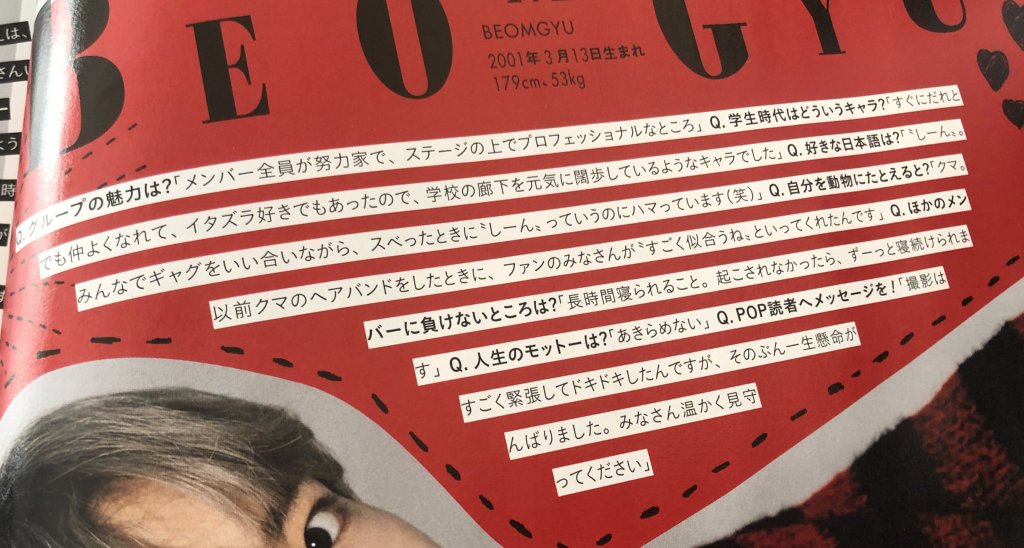 TXT MOA INDONESIA Twitter : “6. Motto Hidup : ‘Jangan menyerah’ 7. Pesan untuk pembaca : Syutingnya sangat menegangkan dan jantung ku berdetak kencang tetapi aku bekerja keras. Semuanya harap tetap hangat