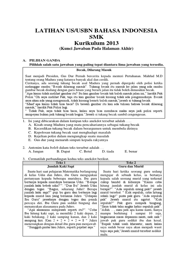 DOC) NASKAH SOAL SETARA UN MATA PELAJARAN BAHASA INDONESIA HASIL KERJA KELOMPOK 1 (SATU | Muhammad Khairunnashir - Academia.edu