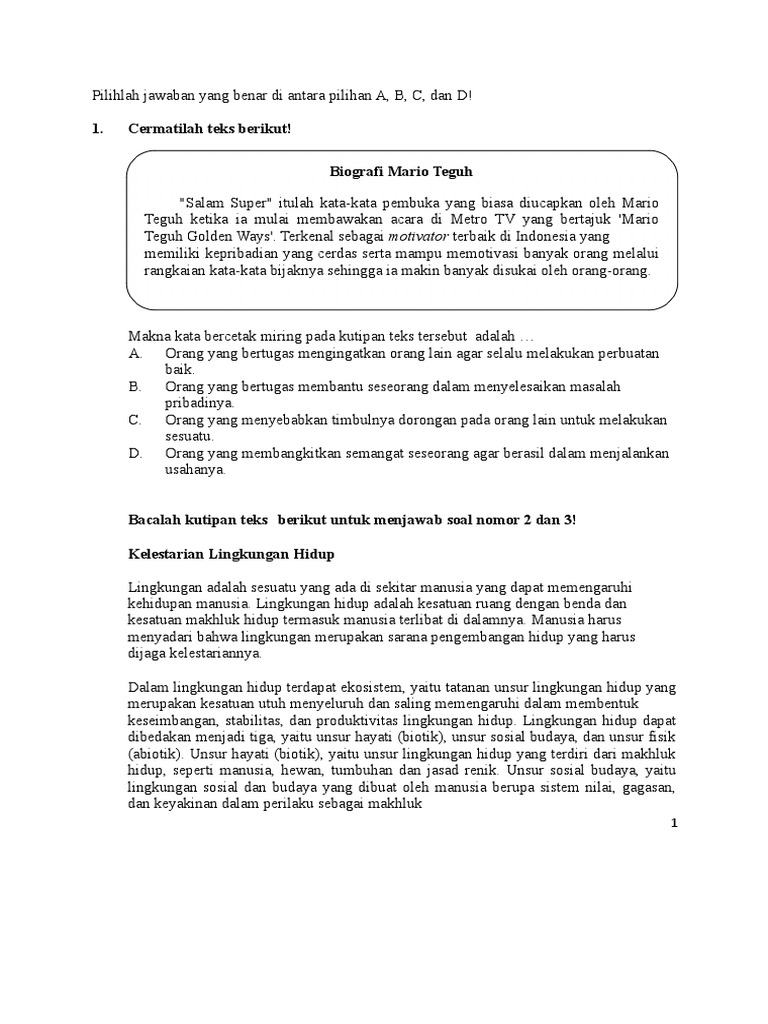 SOAL BAHASA INDONESIA 1