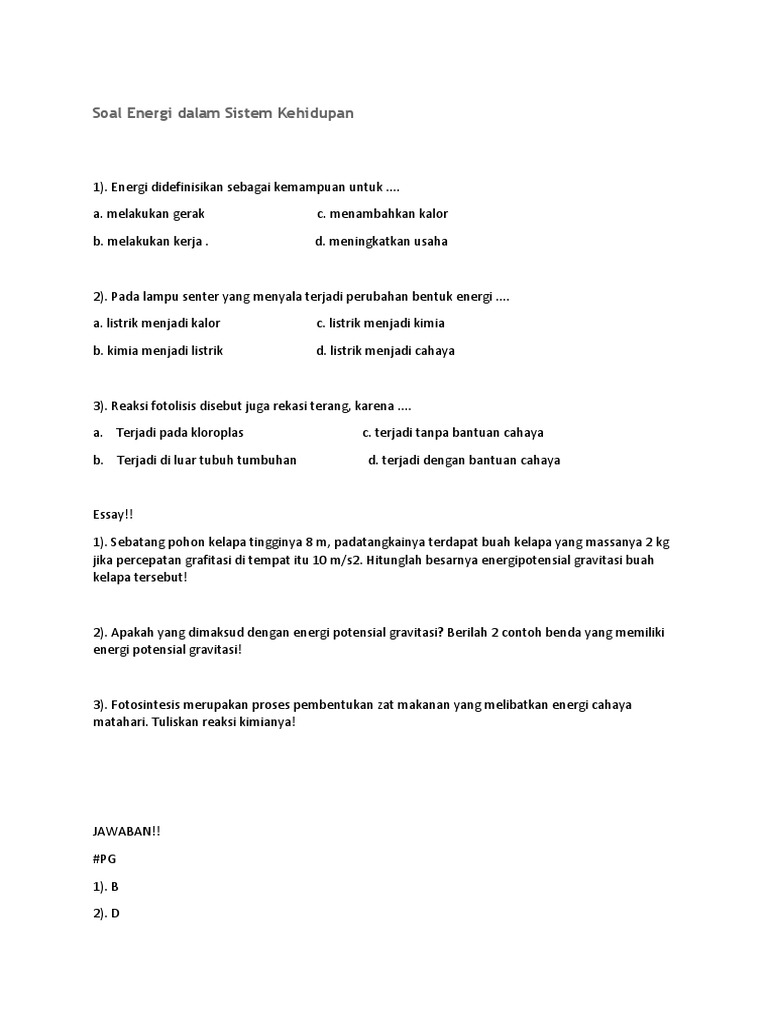 Soal Kelas 7 Energi Kinetik Dan Potensial