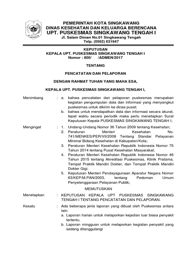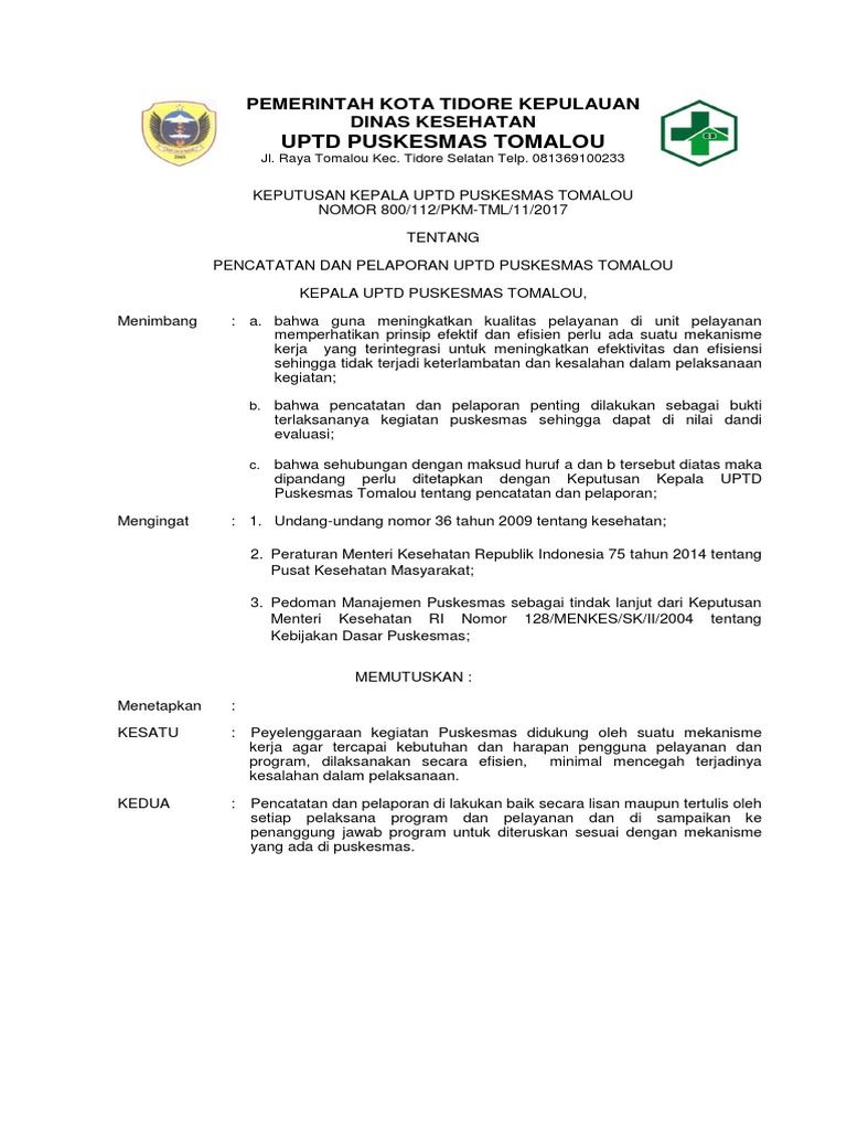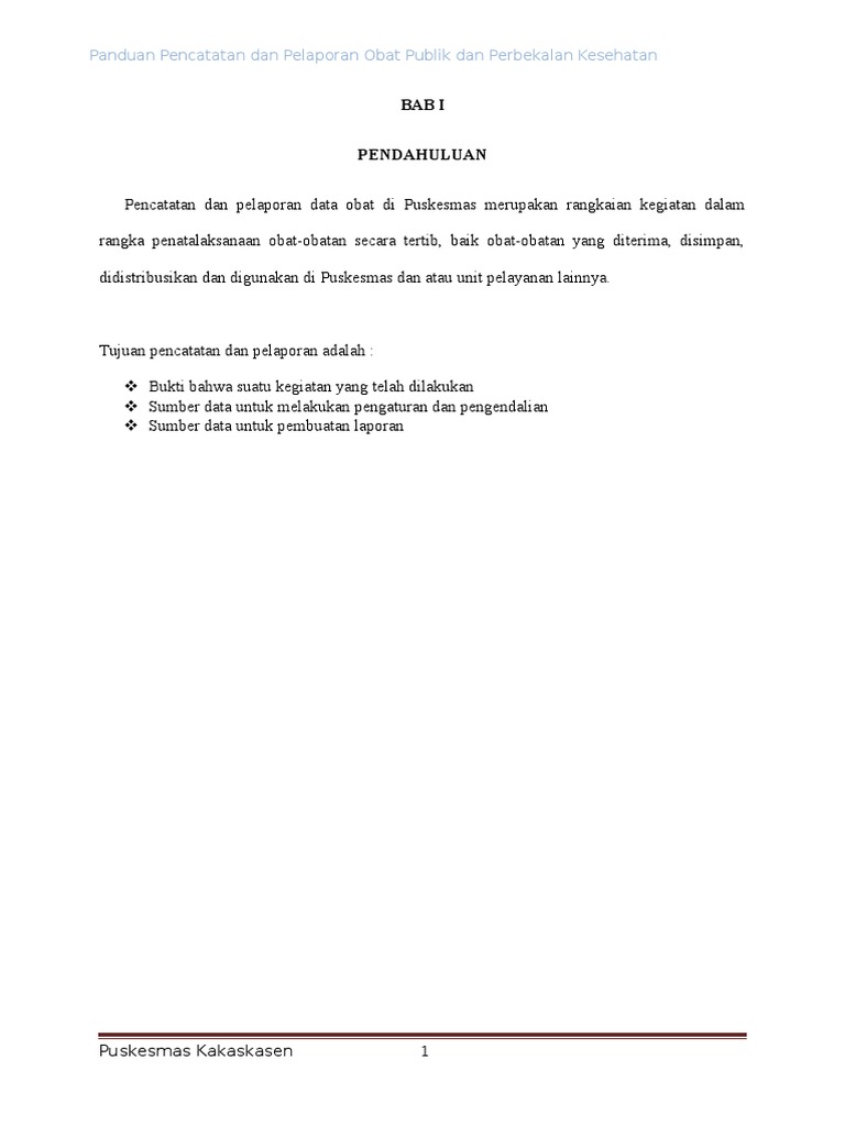 Panduan Pencatatan Dan Pelaporan Puskesmas Pdf
