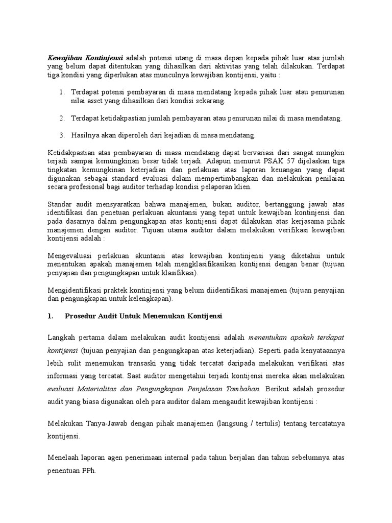 DOC) psak 57 provisi,liabilitas kontijensi,aset kontijensi.docx | rini yulianti - Academia.edu