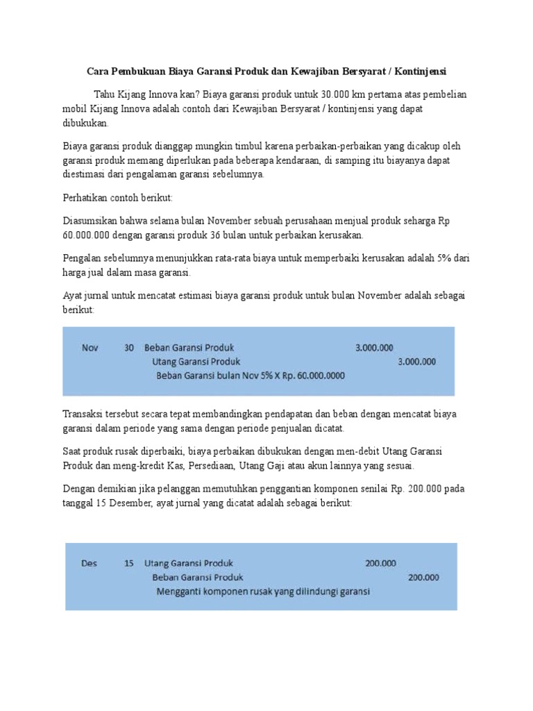 Garansi Produk dan Kewajiban Bersyarat / Kontinjensi