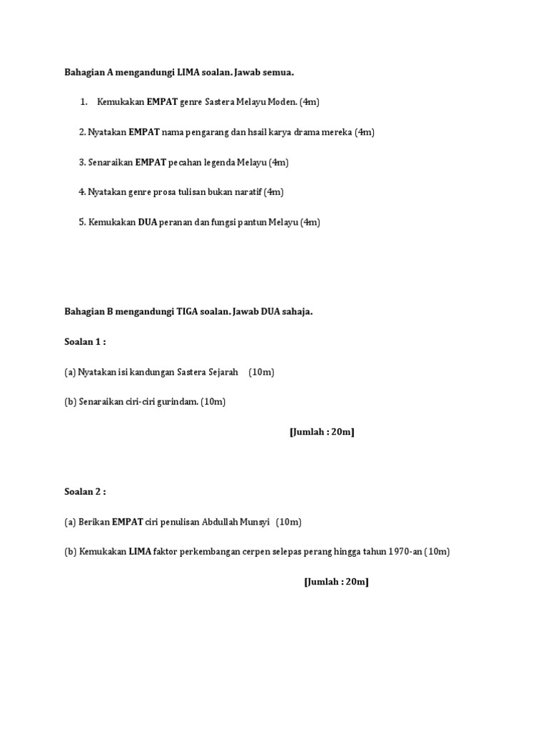 Bahagian a Mengandungi LIMA Soalan