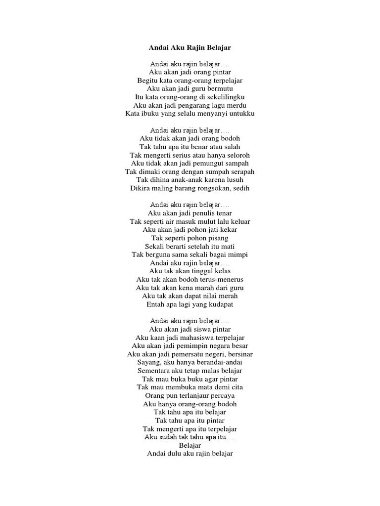 Puisi Anak Andai Aku Rajin Belajar - KT Puisi