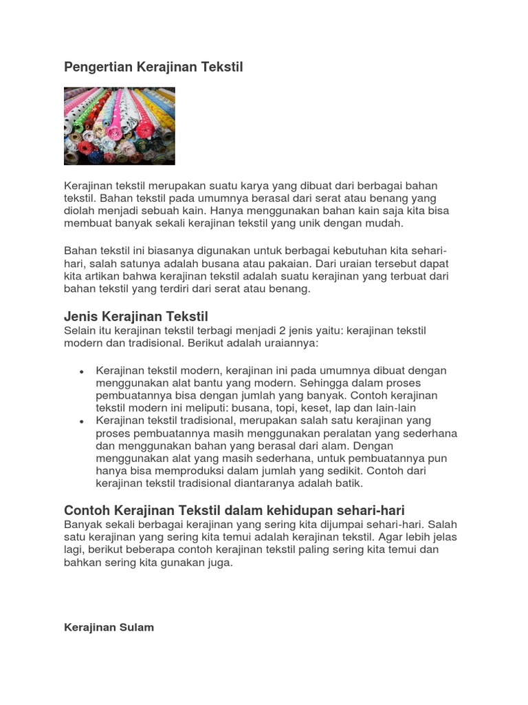Pengertian Kerajinan Tekstil