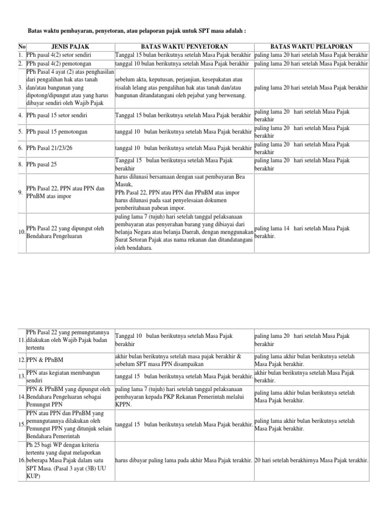 DOC) Batas Waktu Pembayaran/Penyetoran dan Pelaporan SPT Masa dan …