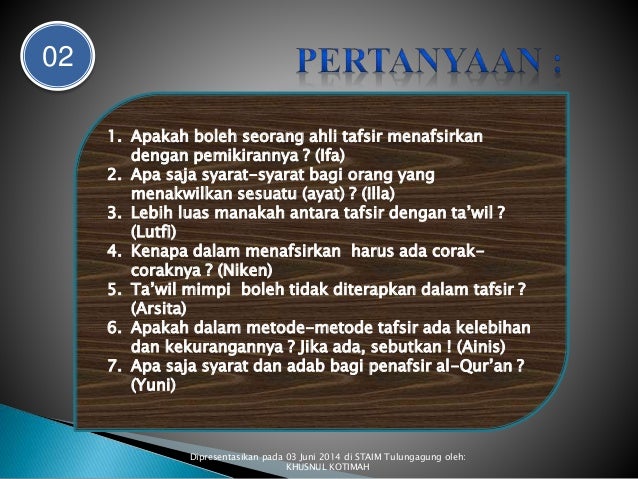 Pertanyaan Essay Tentang Tafsir Ta'Wil Dan Terjemah