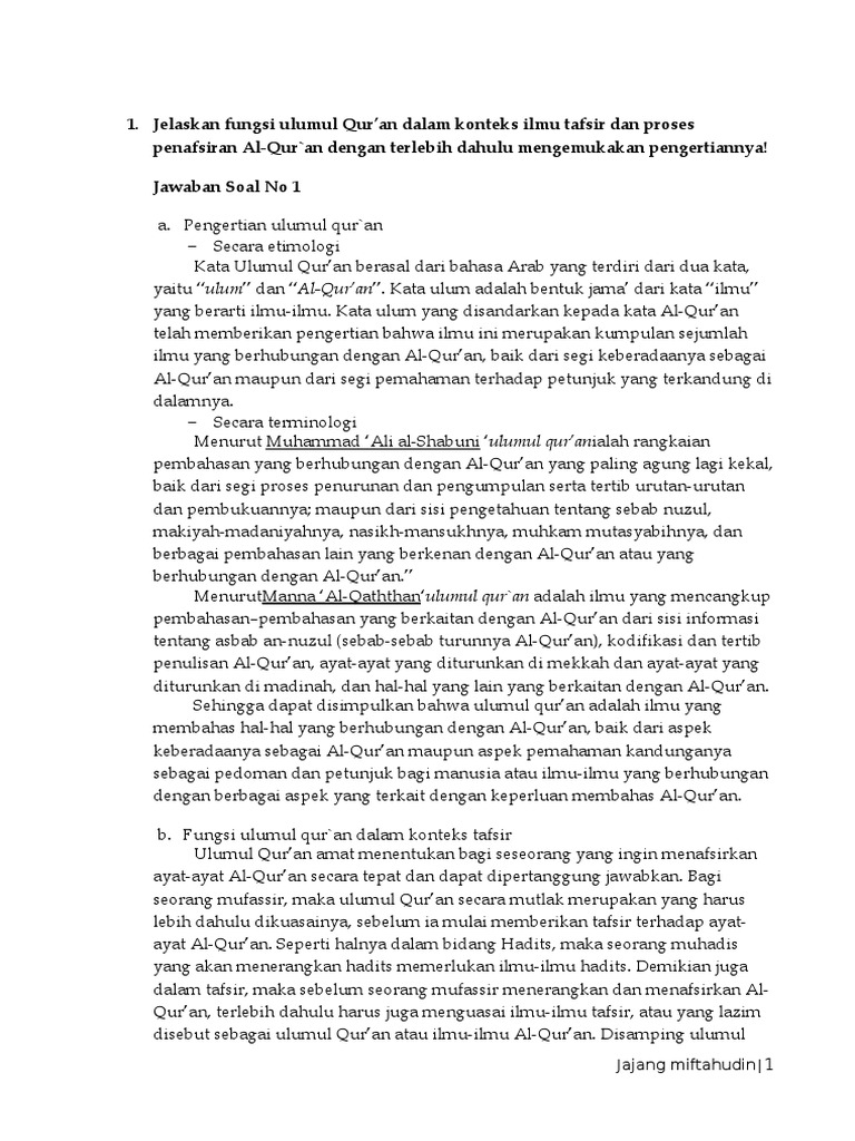 Jawaban UAS Ulumul Qur’an-1