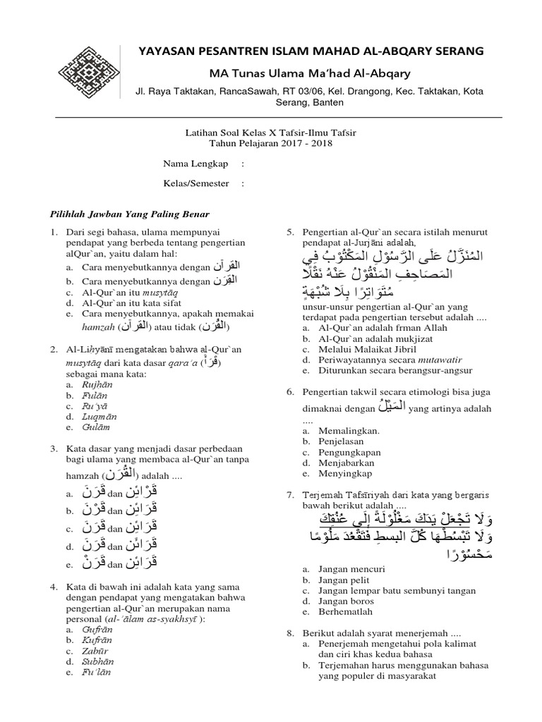 Contoh soal latihan Tafsir-Ilmu Tafsir Kls 10 (2017) Bab 1 & 2.docx