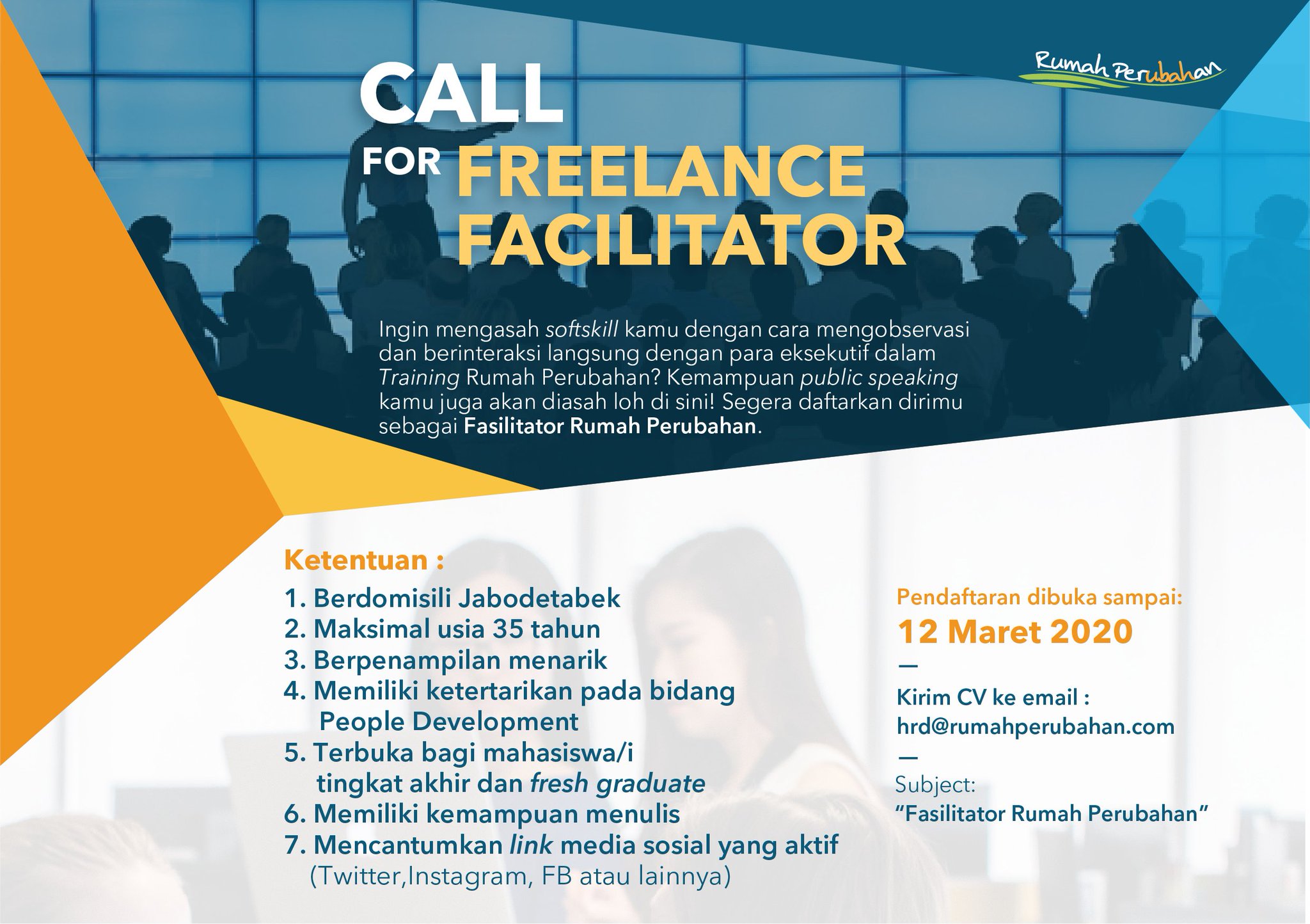 Rumah Perubahan a Twitter: “CALL FOR FREELANCE FACILITATOR Silakan cek poster yang tertera untuk persyaratan. Jangan sampai Anda melewatkan kesempatan ini :)… https://t.co/uXoiF2kosw”
