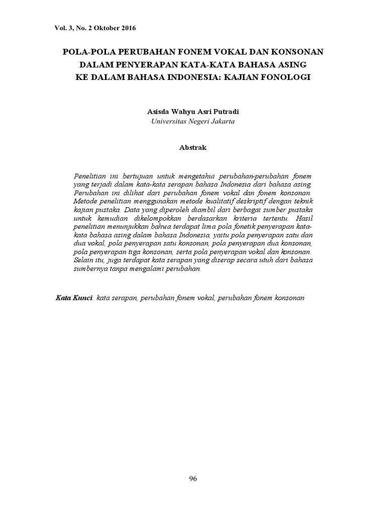PDF) POLA-POLA PERUBAHAN FONEM VOKAL DAN KONSONAN DALAM PENYERAPAN KATA-KATA BAHASA ASING KE DALAM BAHASA INDONESIA: KAJIAN FONOLOGI