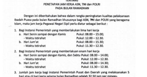 Jam Kerja PNS Bulan Ramadhan 2018 - panduandapodik.id