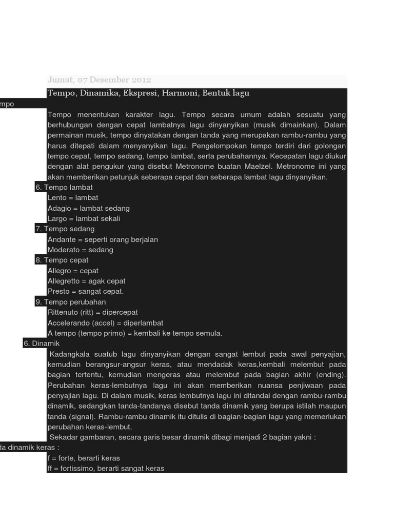 Tanda Tempo Dan Tanda Dinamik Dalam Lagu - Kanal Informasi