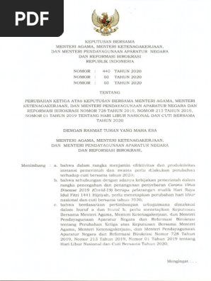 Perubahan Ketiga Skb 3 Menteri Cuti Bersama 2020 Pdf