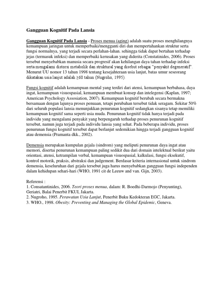 Faktor yang Mempengaruhi Fungsi Kognitif pada Lansia | Window of …