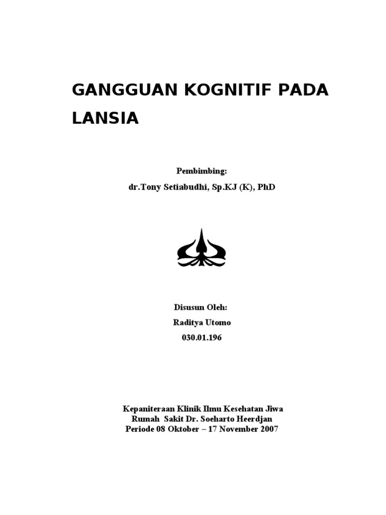 PDF) HUBUNGAN TINGKAT KEMANDIRIAN DAN GANGGUAN KOGNITIF PADA LANSIA
