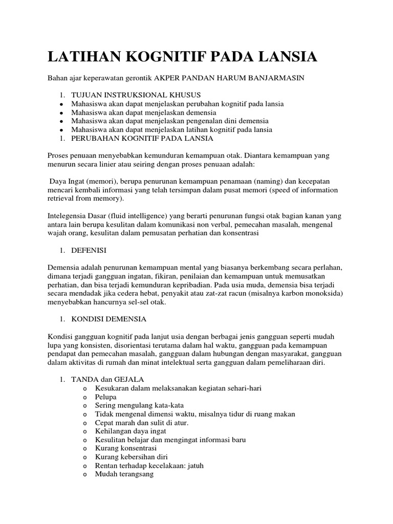 MAKALAH LATIHAN KOGNITIF PADA LANSIA