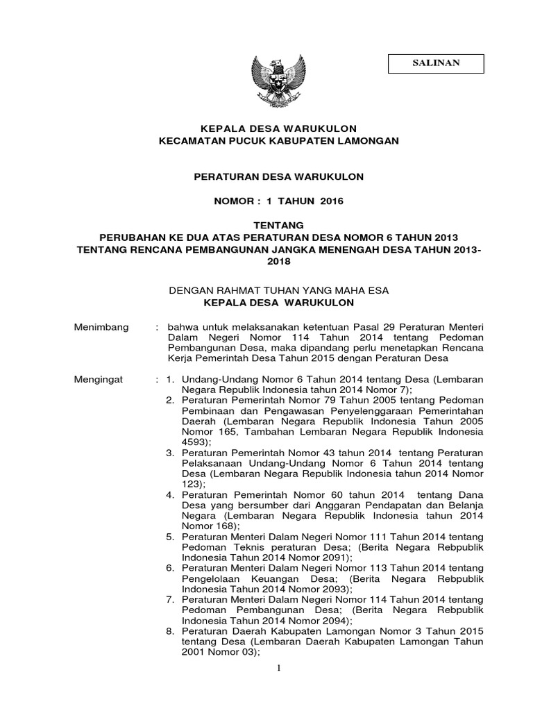 PDF) Perdes Perubahan RPJM Desa | Sigit Sutaryo - Academia.edu