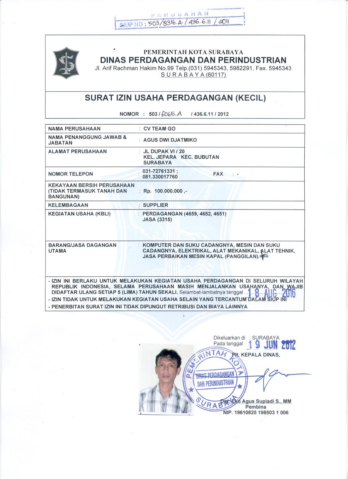 CV TEAM GO: SIUP PERUBAHAN