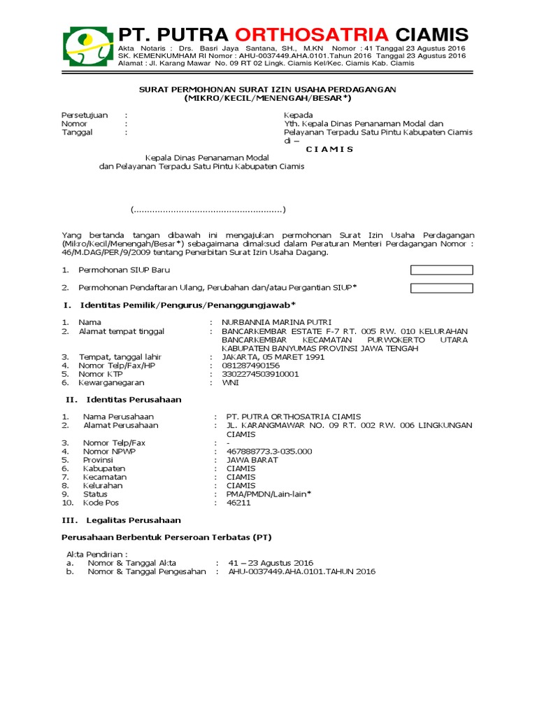 Contoh Surat Ijin Usaha Perdagangan [pon21dmv6j40]